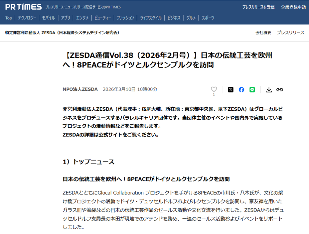 PR TIMES掲載記事(ZESDA欧州出張レポート)