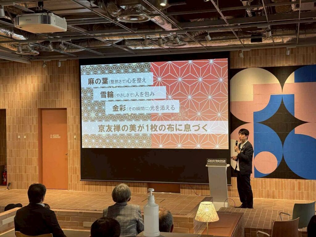 「おもてなしの始まり」をテーマに、麻の葉・雪輪・金彩に込めた想いについてもお話ししました。