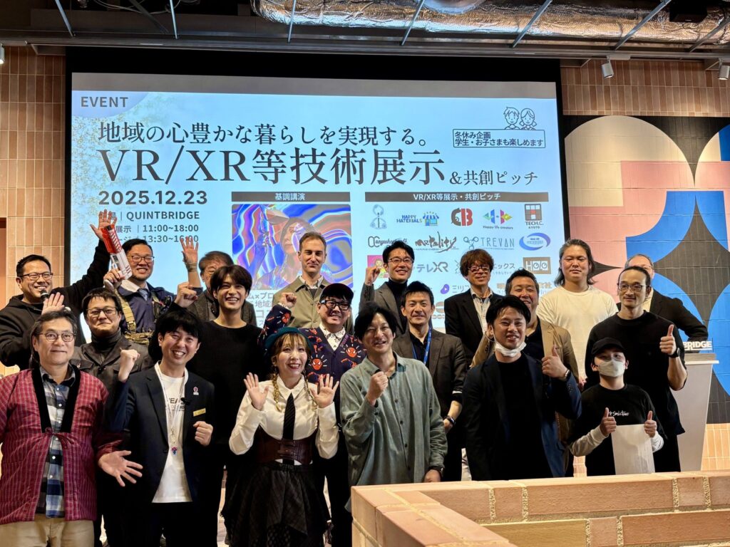 大阪・京橋 QUINTBRIDGE にて開催されたピッチイベント「地域の心豊かな暮らしを実現するVR/XR等技術展示&ピッチイベント」に登壇し、「文化の架け橋が紡ぐ、地域と世界の心豊かな暮らし」をテーマに発表しました。
