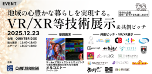 2025年12月23日(火)、大阪・京橋にあるQUINTBRIDGE にて開催される「<冬休みXR展示企画> 地域の心豊かな暮らしを実現するVR/XR等技術展示&ピッチ」に登壇します。 少子・高齢化、首都圏への一 […]