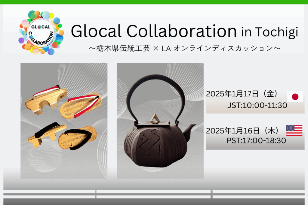 ◆ 名称:「Glocal Collaboration」栃木県の伝統産業でロサンゼルスの生活を彩るアイテムを一緒に創る意見交換会